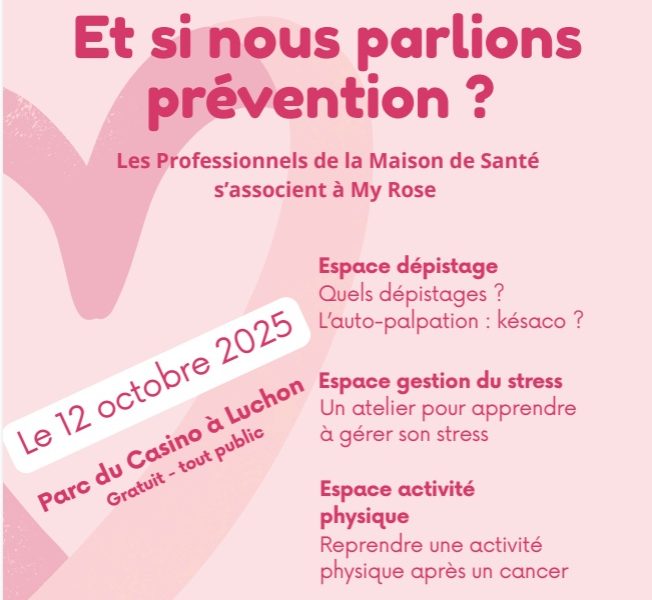 - Un stand de prévention santé à luchon pour Octobre rose📅Dimanche 12 octobre 2025 – de 10h à 17h📍 Parc du Casino – Luchon Un rendez-vous gratuit et ouvert à toutes et à tous !…