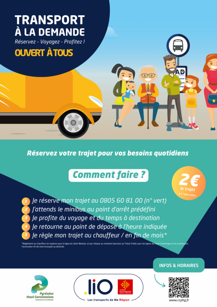 🚍 La Communauté de Communes Pyrénées Haut Garonnaises a instauré des lignes de Transport À la Demande (TAD).